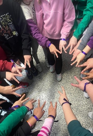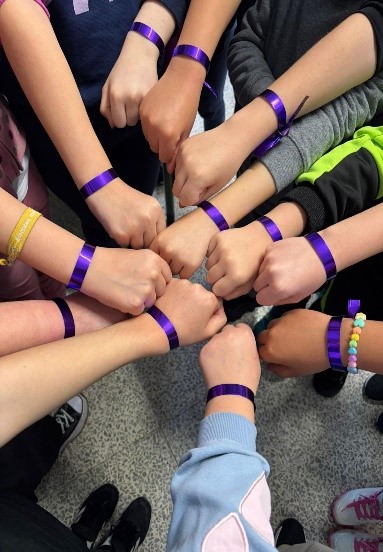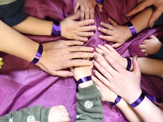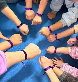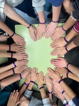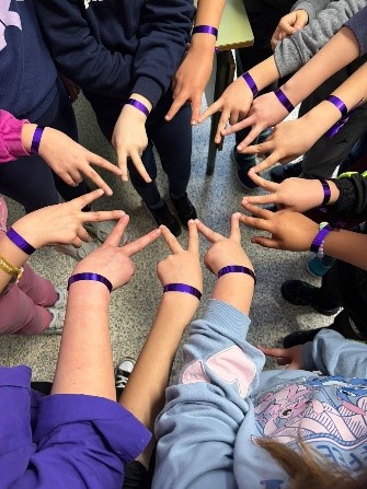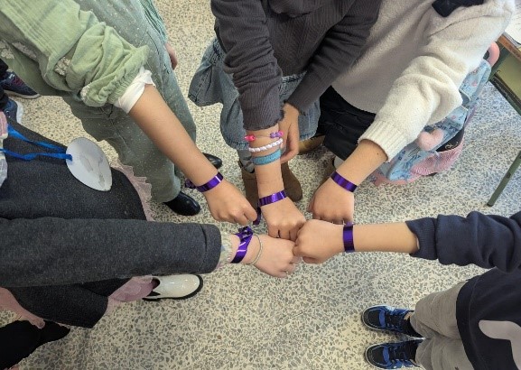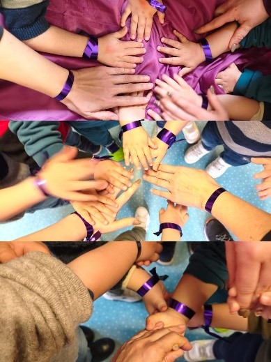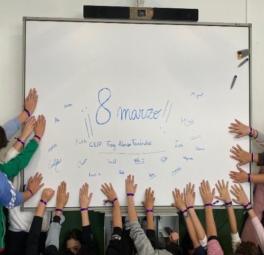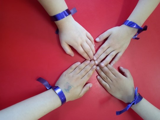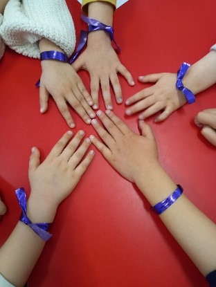 Desde nuestro colegio y dentro del Plan de Igualdad, hemos querido homenajear a las mujeres que nos rodean y nos cuidan: mamás, abuelas, hermanas, compañeras… Para ello hemos adornado nuestras muñecas con una sencilla cinta de color morado.